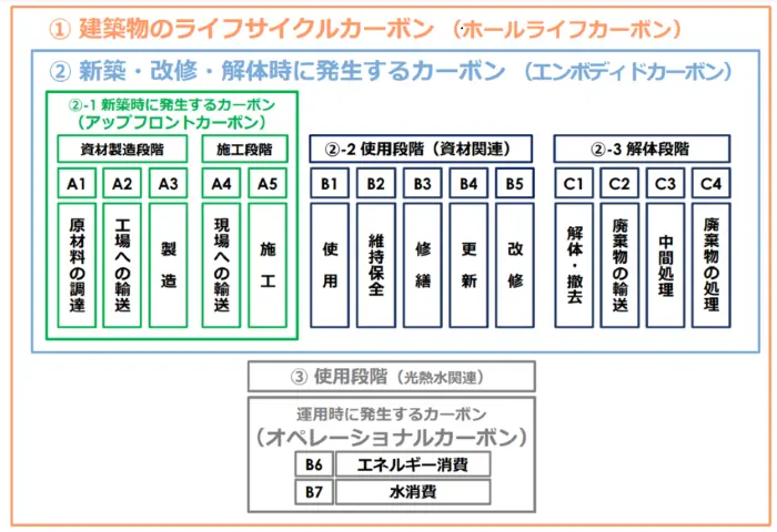 を合わせて、建築物のライフサイクルカーボン「ホールライフカーボン」で構成されるものです。