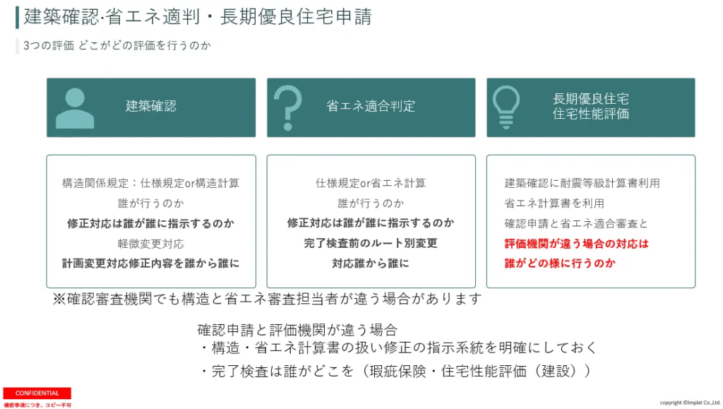 全体の流れですが、長期優良住宅申請がある場合などは、誰がどこまで、どのように業務を行うのか、