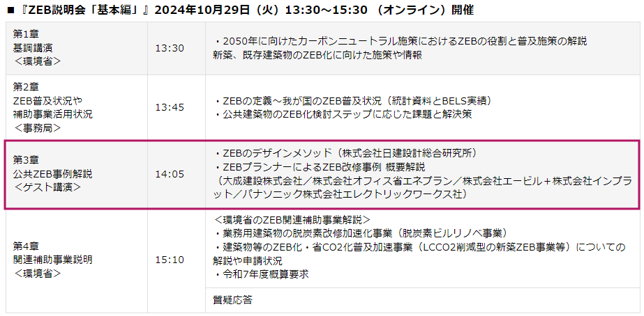 説明会では、インプラットは「ZEBプランナーによるZEB改修事例 概要解説」を行います。