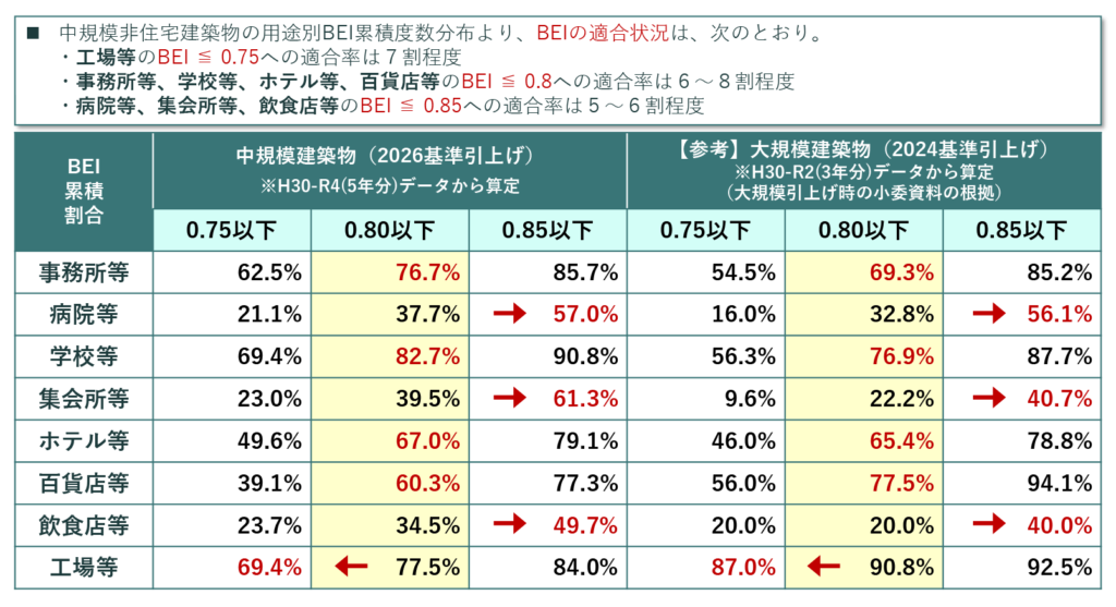 法施行は4月1日以降に省エネ適合申請を行う案件で、用途別に基準が決められています。